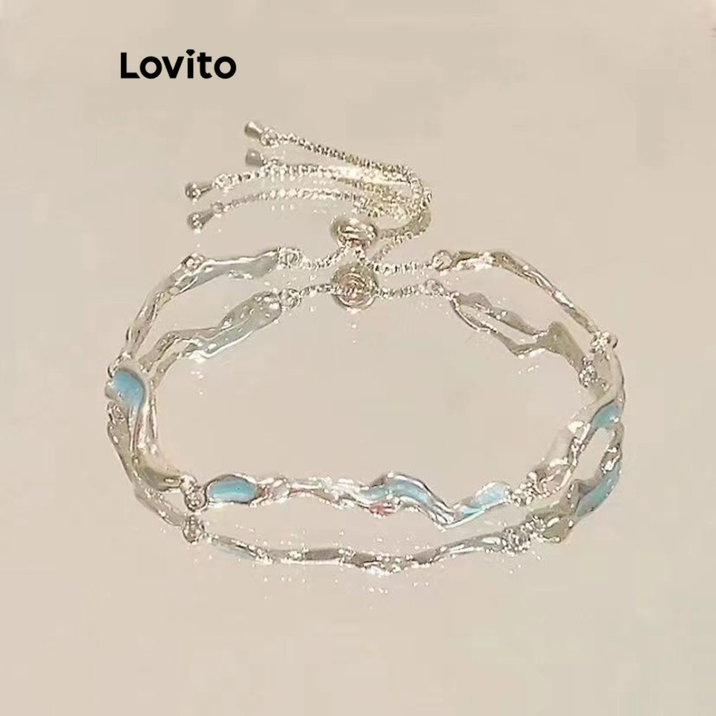 True to description: true Material: metal , metal Color: silver white blue white blue Nice little bracelet, adjustable width. Buy it, everyone.