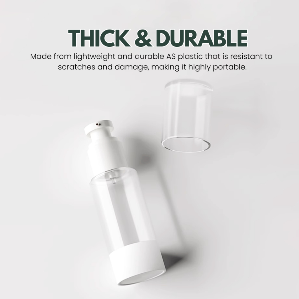 Material Quality:decent Colour:ok The pumps work ok. Hopefully really are “ vacumn” pumps to dispense out creams. Material of the plastic cylinder bottles hopefully can withstand accidental drop or not crack if accidentally placed under heavy items