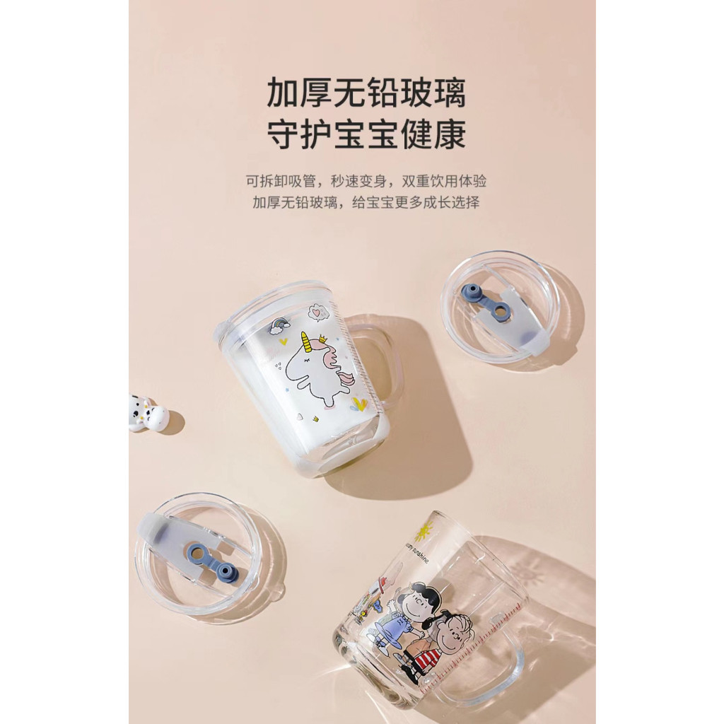 Mug? 400ml Children's Breakfast Glass Mug With Straw Scale Cartoon Animal Unicorn Milk cup with Handle Glass Bottle