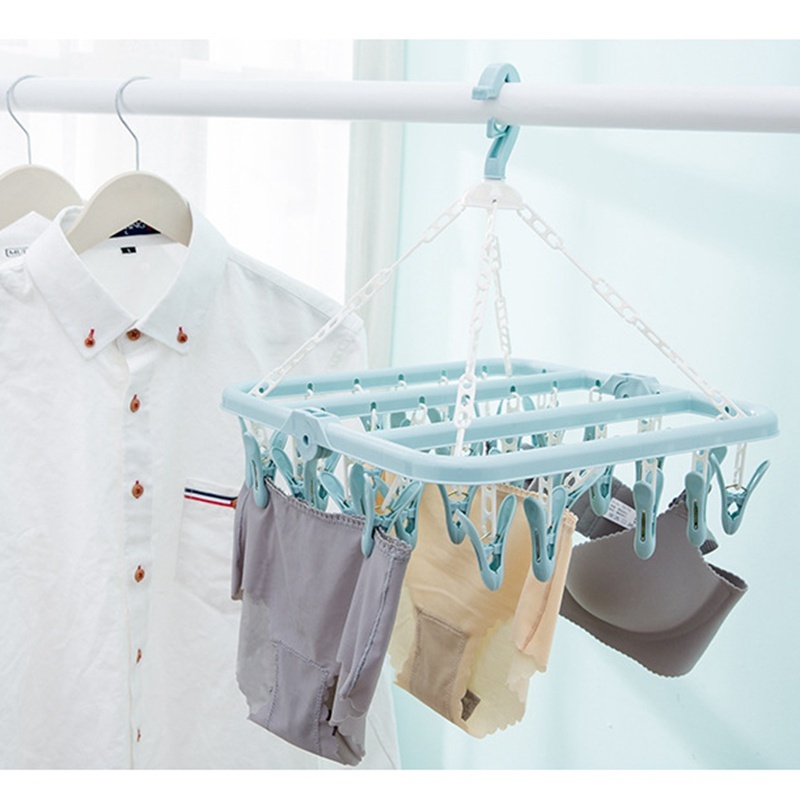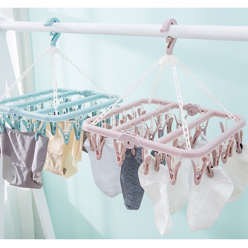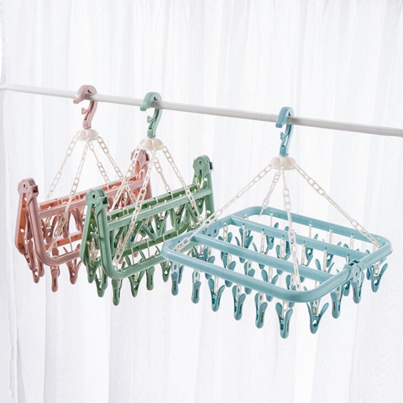 【Ready Stock】SPOETRY 32 Clips Folding Clothes Dryer Hanger 2-Way No-Slant Foldable Clothing Pegs Hanger Drying Rack