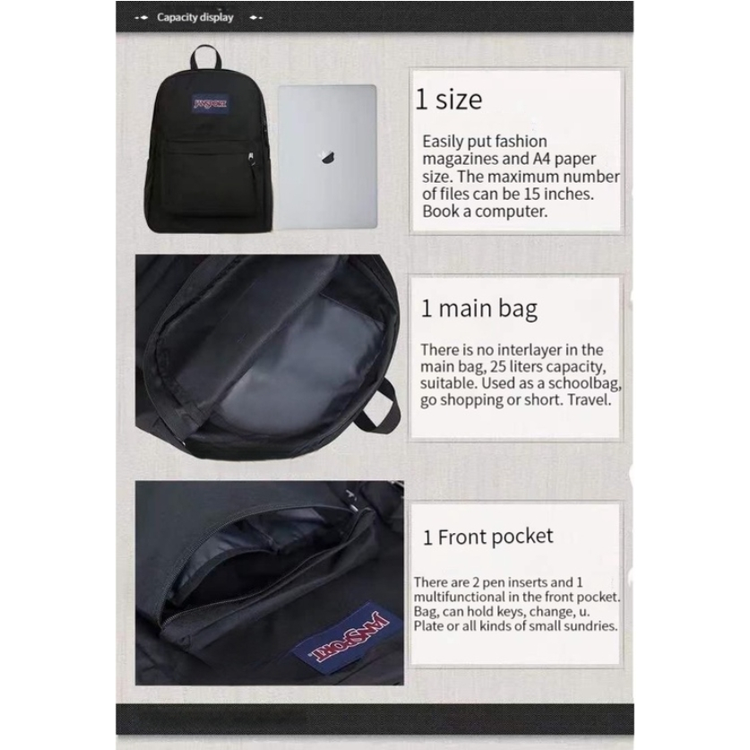Value for Money:yes Suggested Look:casual Capacity:can fit A4 and laptop for school Good buy good material good price too will definitely buy again hope to have more colours.