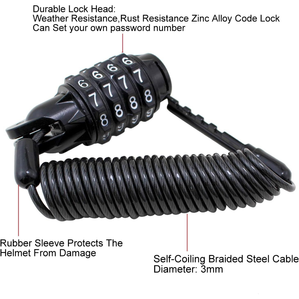 Appearance:Ok Quality:Ok Suitability:For helmet Item arrived. Product quality looks good. Cable able to loop into helmet D-ring. Should prevent helmet from thieves.