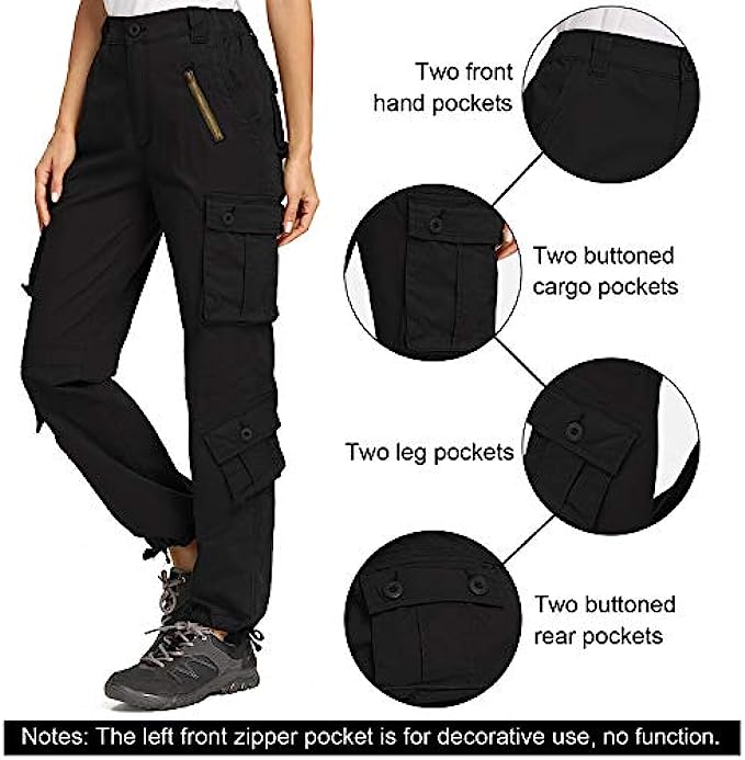 • Cargo Pants for Women: Alfiudad tactical performance cargo pants features 8 pockets which is stylish and functional to help free your hands during activities/The left front zipper pocket is for decorative use. Hand/Machine washing in cold water, do not bleach, hang dry is preferred. Belts need to be purchased seperately.