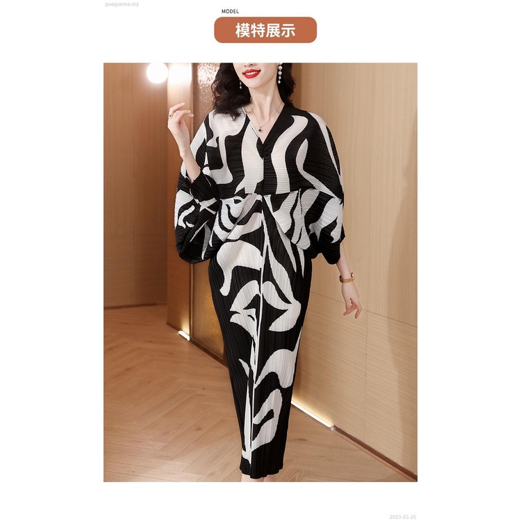 Pleated Dress 2022 Blue Print Slim Bat Sleeve Loose V-Neck Holiday Floral Dress - 2023-03-23
