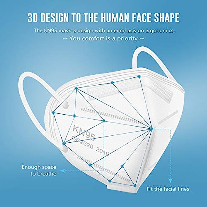 Skin-friendly and Comfortable : These KN95 face mask use skin-friendly non-woven fabric, no irritation to your skin, High-elastic ear loops and adjustable nose clip to ensure a comfortable fit and no strain of ears